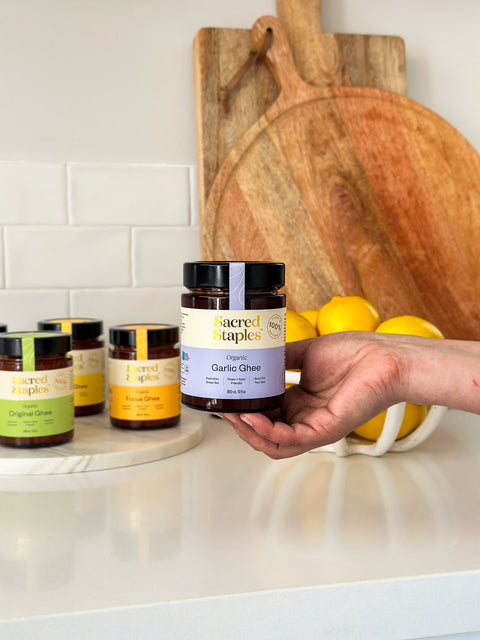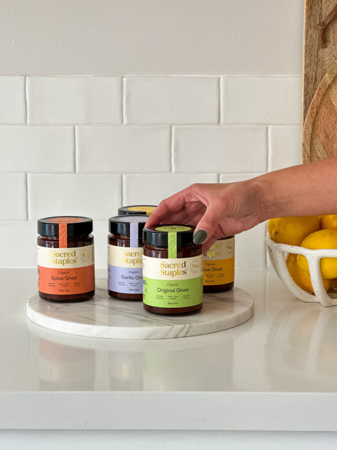 Today, we continue that journey with ghee at the heart of our range and a growing collection of sacred staples designed to elevate modern wellness. Because eating well shouldn’t be stressful — it should make you feel whole again.